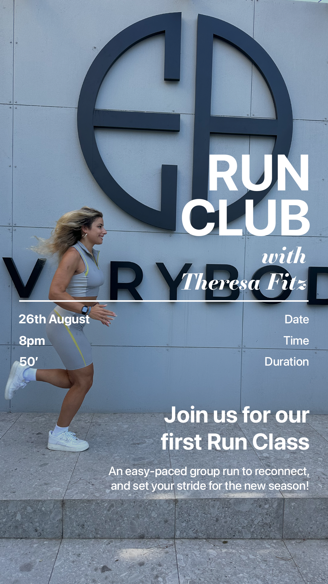 Run Club with Theresa Filtz Join us for our First Run Class BOOK NOW + Add to Google Calendar + iCal / Outlook export The event is finished. Date 26 Aug 2025 Expired! Time 8:00 pm - 8:50 pm Share this event